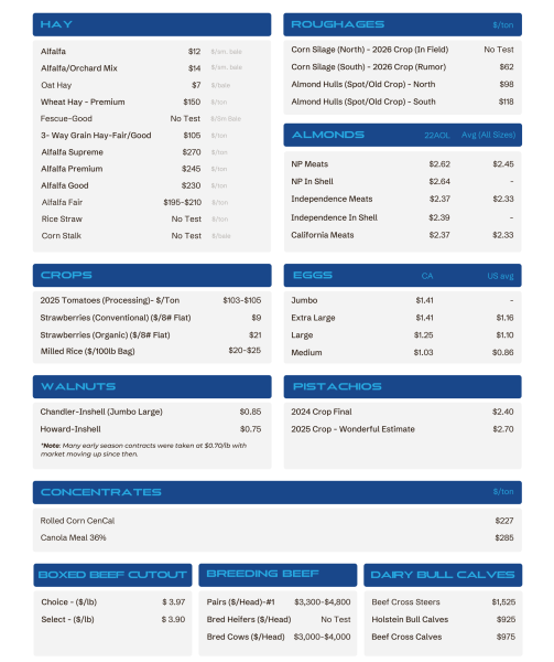 Your California Commodity and Market Price Update for this Week!