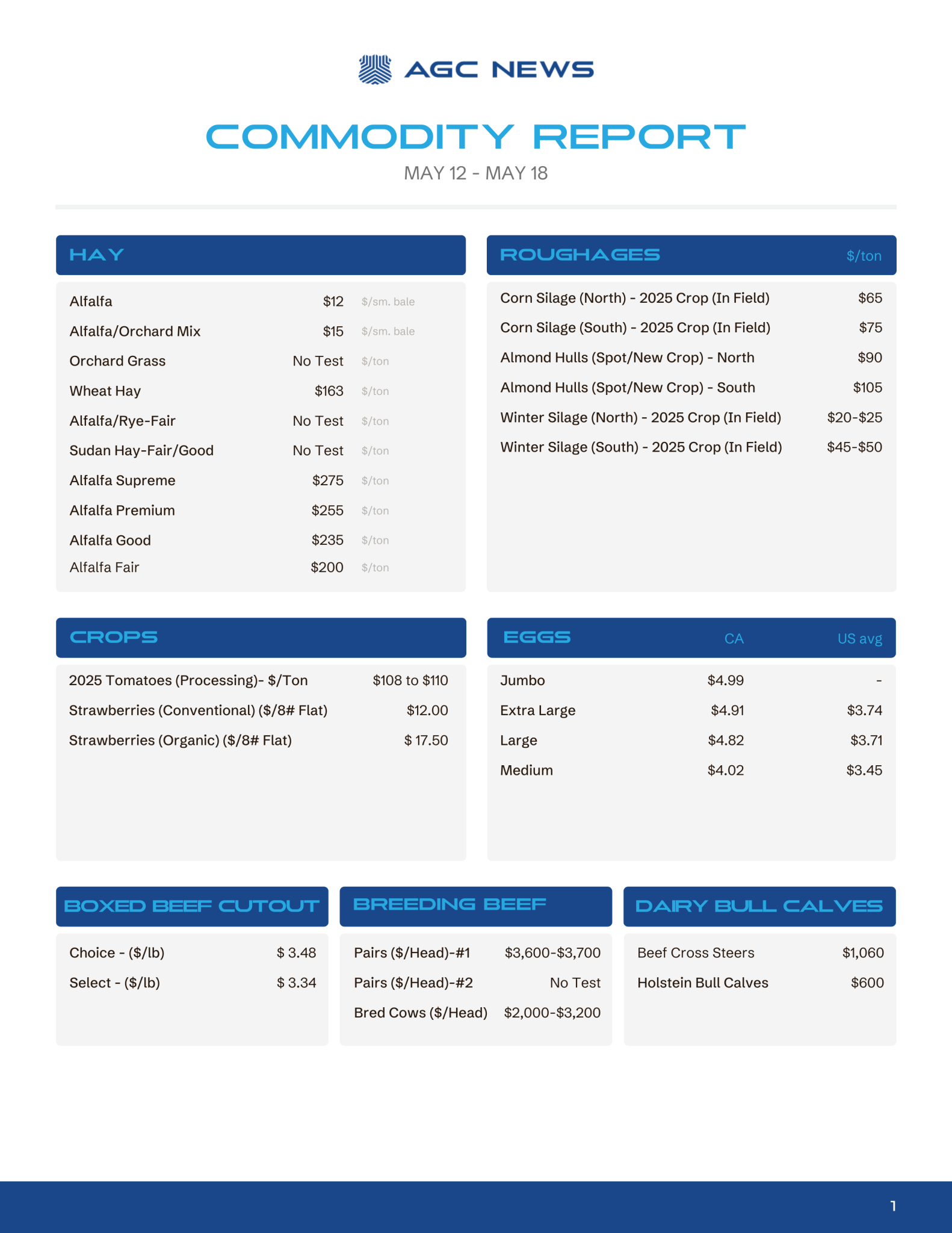 Your California Commodity and Market Price Update for the Week!
